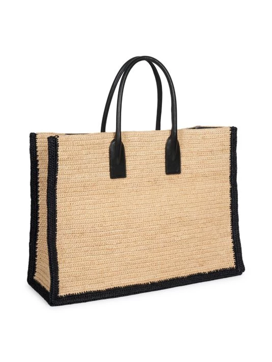 Saint Laurent’s Rive Gauche tote is skillfully crafted in Italy of woven raffia with a spacious interior. Adorned with leather tubular straps, this easily recognizable piece is defined with bold logo text at the front.