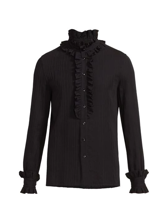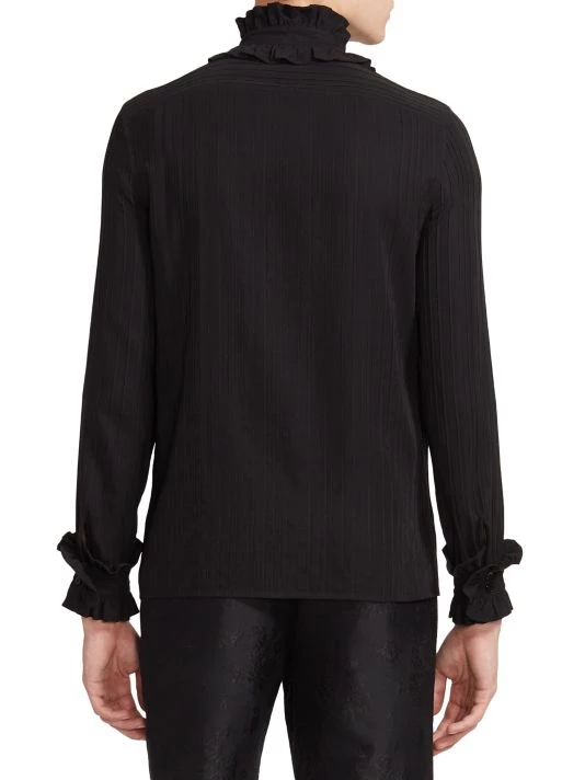 Pleating and ruffles impart an evening-ready sensibility to this silk button-up shirt.