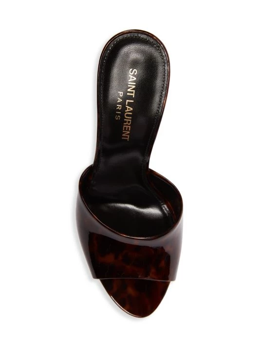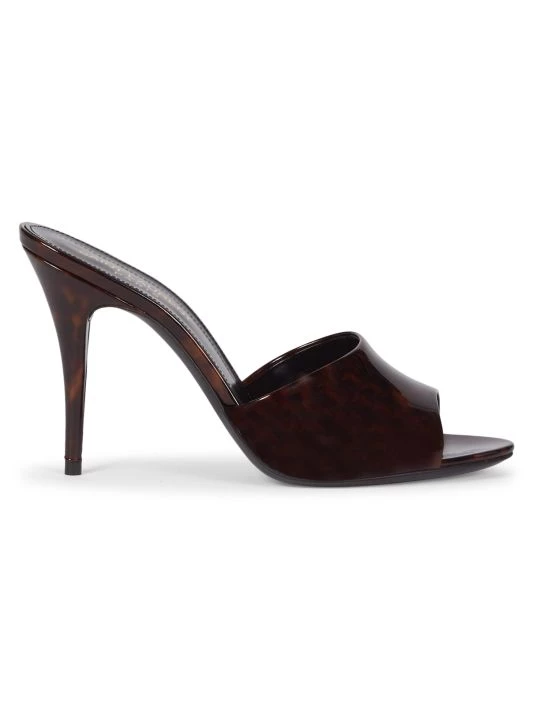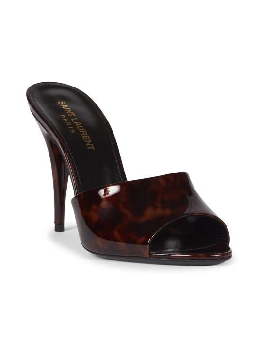 Made in Italy, Saint Laurent’s Sexy mules are crafted of animal printed patent leather. This luxurious pair is anchored by a leg-lengthening stiletto heel.