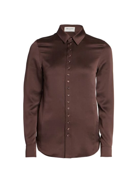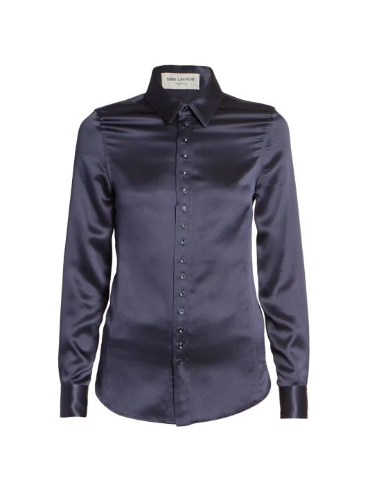 Saint Laurent’s fitted shirt is crafted of soft Italian silk, finished in a sheen satin.