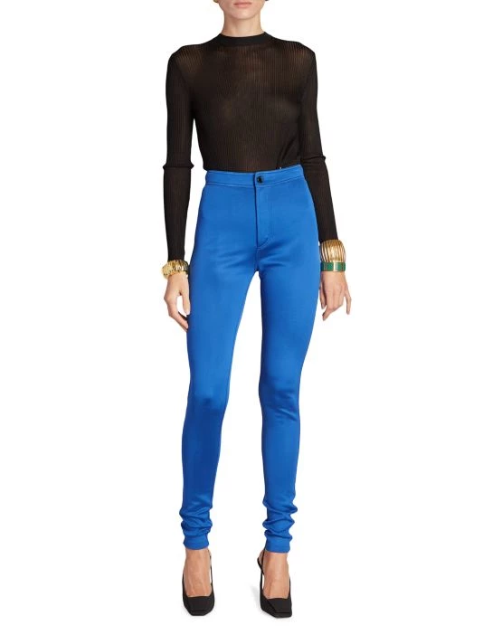 These sleek mid-rise pants skim the figure, featuring an ultra-slim fit.