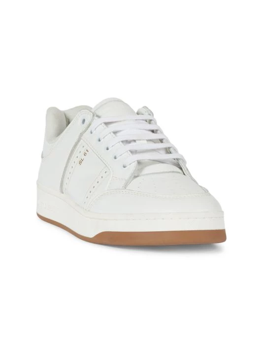 Saint Laurent introduced its famous Le Smoking tuxedo in 1966, a rendition of the classic men’s smoking suit made for women. Inspired by the iconic silhouette and 1970s women’s archival pieces, Creative Director Anthony Vaccarello reinterprets these styles for menswear with slinky, billowing shapes, delicate textures, and intricate patterns. The result is a unique, androgynous look that celebrates fluidity as a cornerstone of contemporary fashion. These sneakers are crafted of smooth and pebbled leather, finished with a metallic foil printed logo.