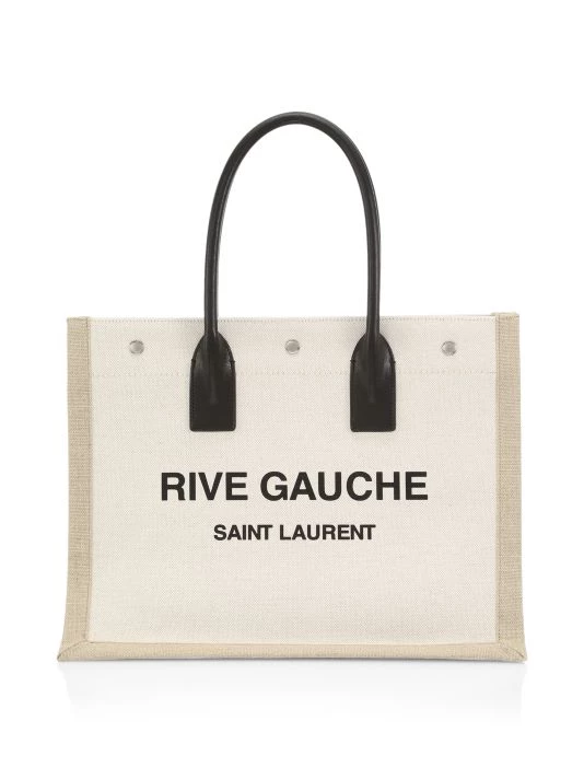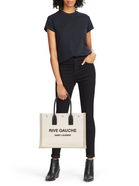 Updated in a smaller version, this iconic tote features bold graphic text and smooth leather straps.