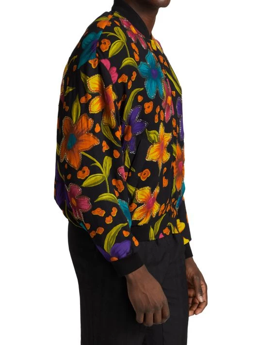 Made in Italy by Saint Laurent, this crépon bomber jacket is styled with a floral motif and beaded trim.