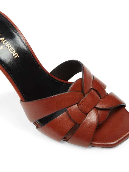 Saint Laurent’s signature interwoven straps lend an artisanal aesthetic to these leather mules.
