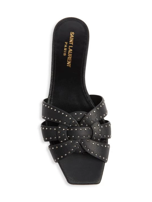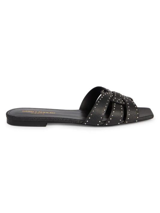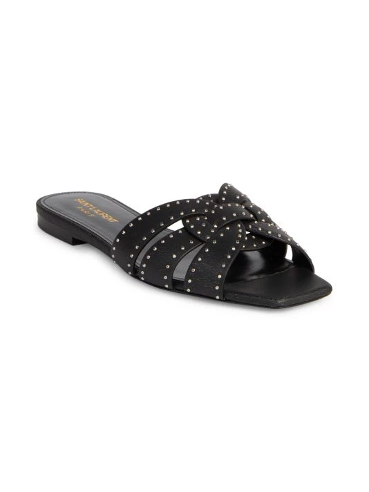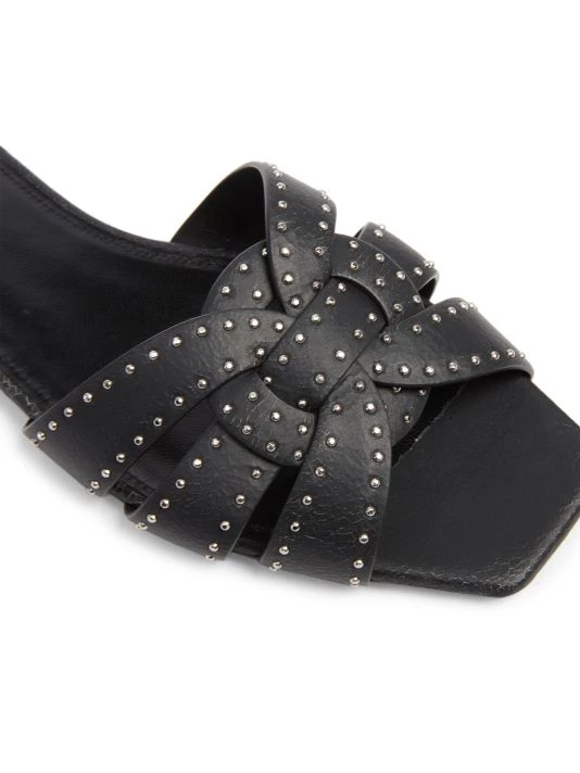 Tiny silver studs embellish these signature woven leather flats, designed with a chic open square toe.