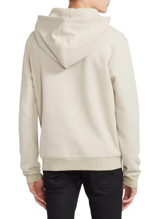 This cozy hooded fleece sweatshirt features a graphic interpretation of the house logo type rendered by Belgian artist Bruno V.Roels.