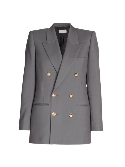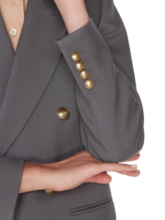 Polished goldtone buttons accent this timelessly tailored jacket in a double breasted fashion creating a structured silhouette that will become a staple wardrobe piece.