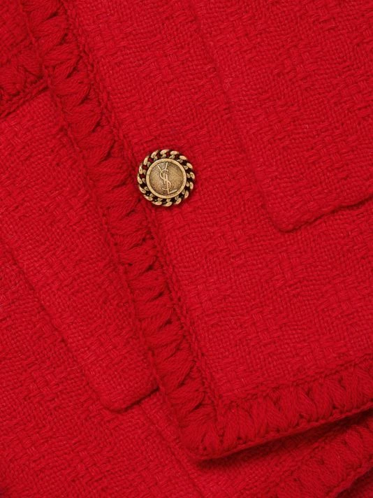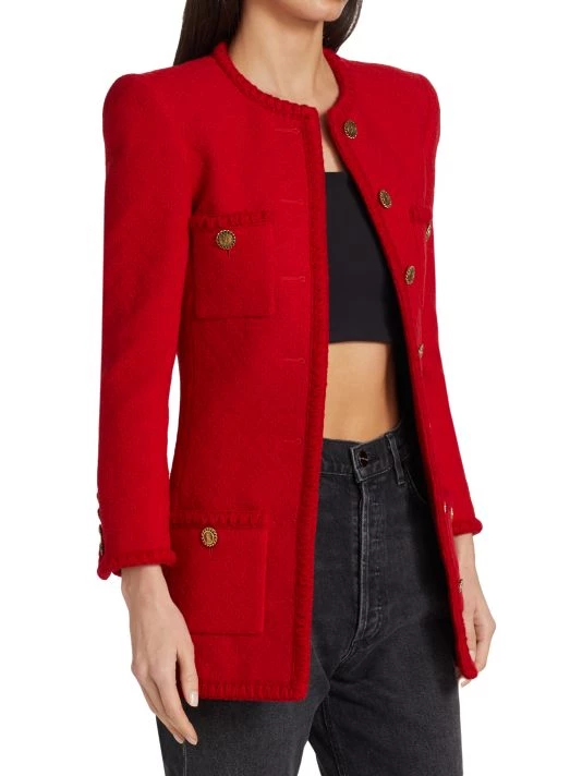 Designed with a timeless look, this wool tweed jacket is tailored to a refined silhouette that hits below the hip.
