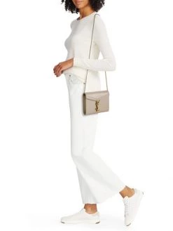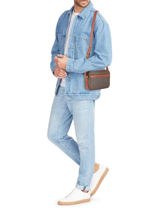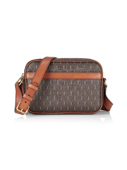 Dressed in Saint Laurent’s monogram coated canvas, this Italian-made bag is finished with the heat-stamped logo at rich leather trim.