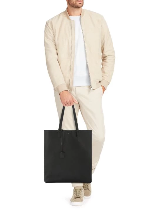 Crafted of full-grain leather, this shopping bag is adorned with a leather tag and is printed with the Saint Laurent logo at the front.